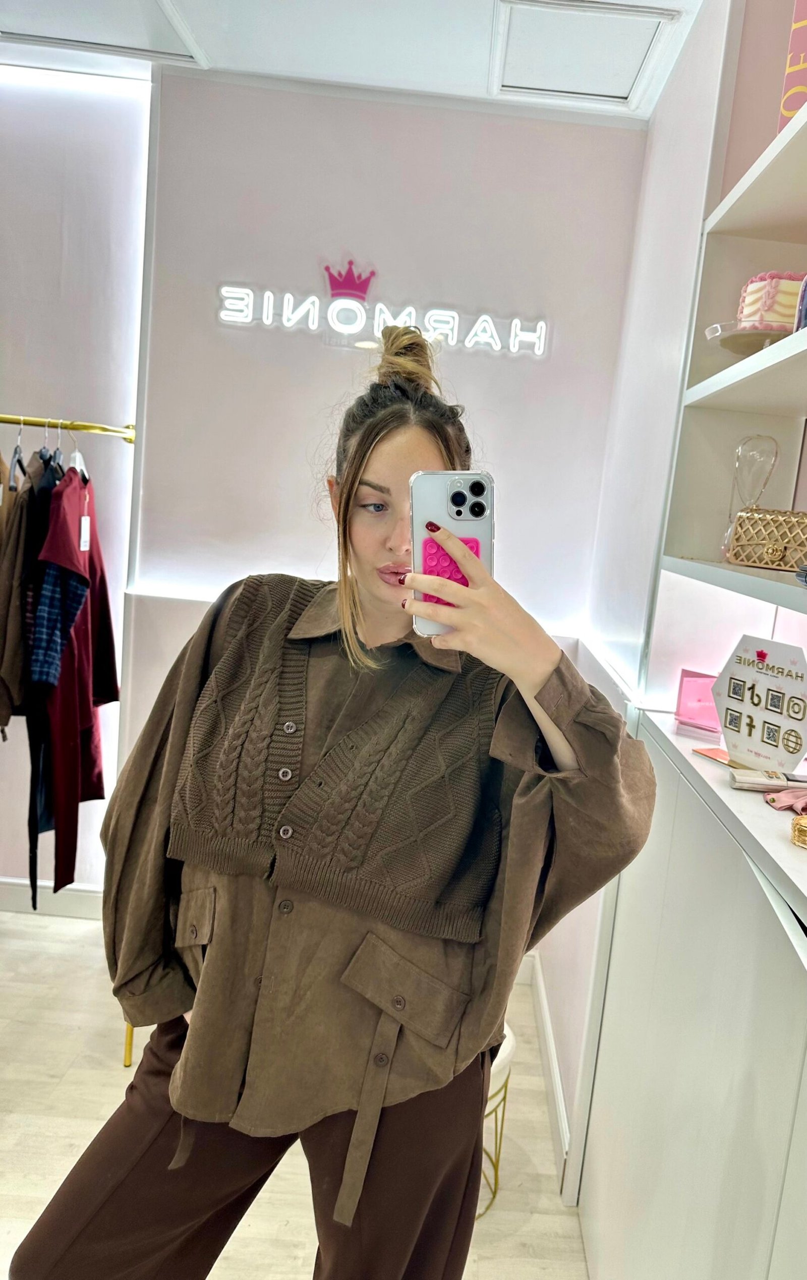 Camicia oversize in velluto con gilet in lana