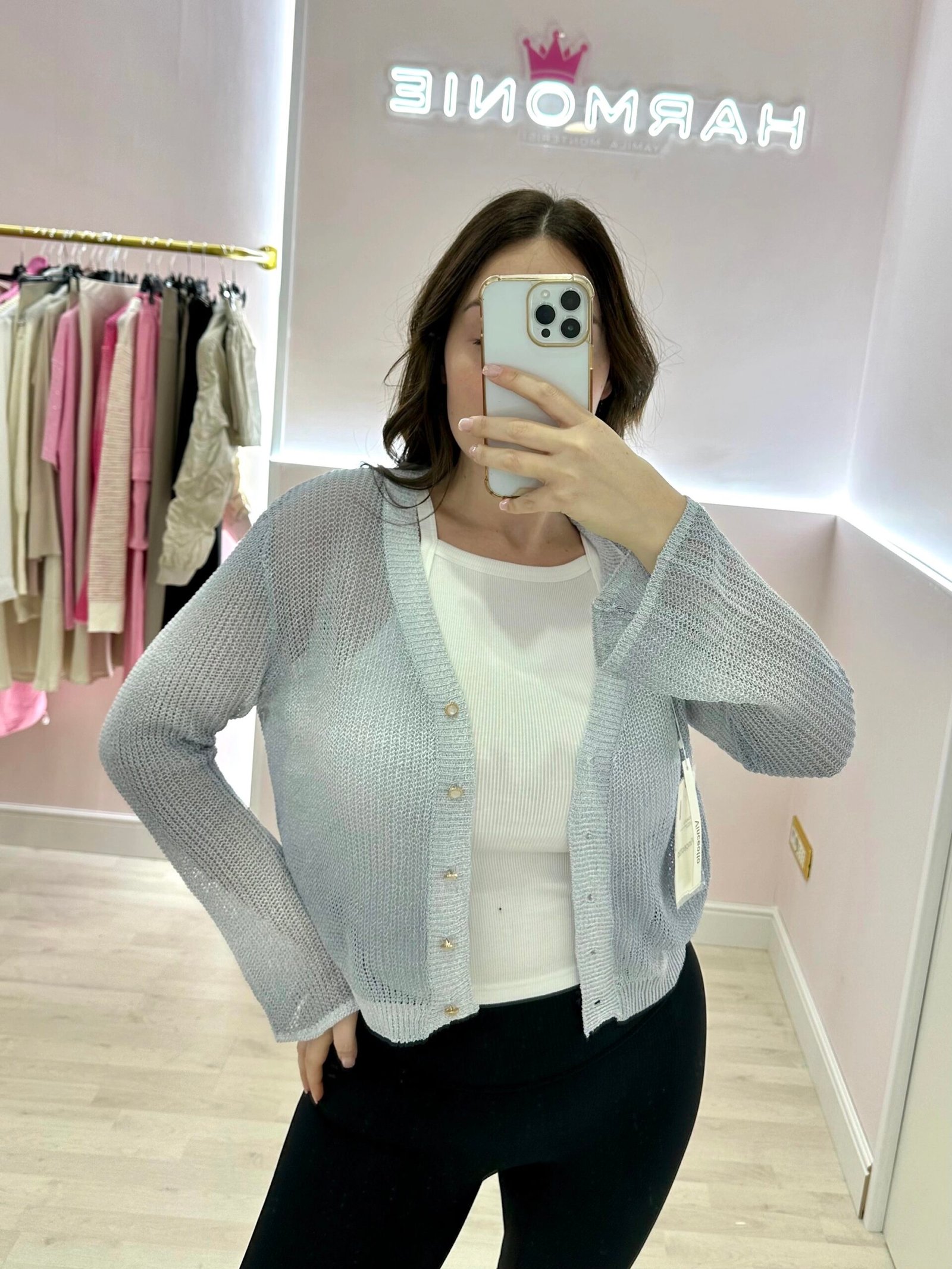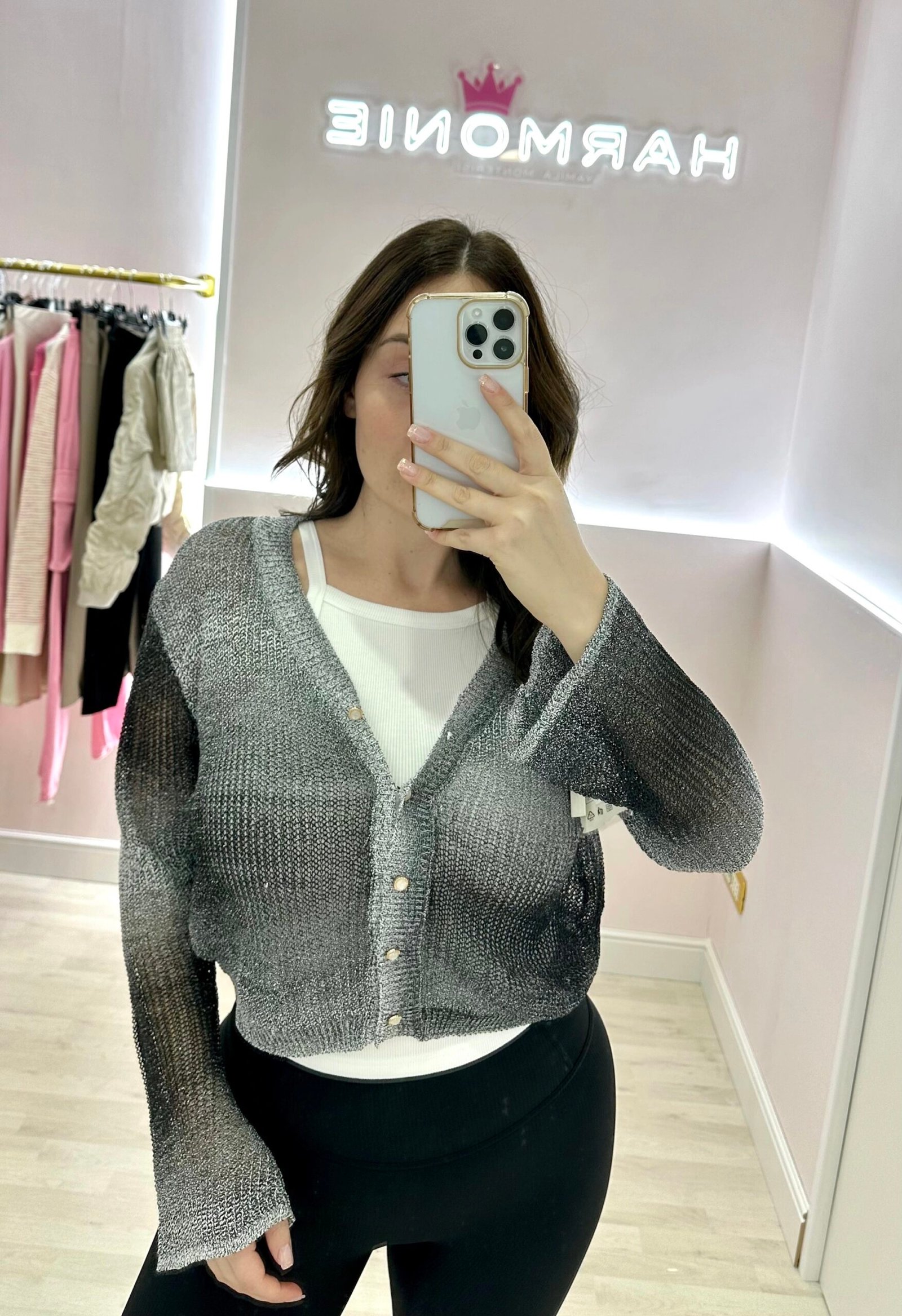 Cardigan crop con bottoni oro